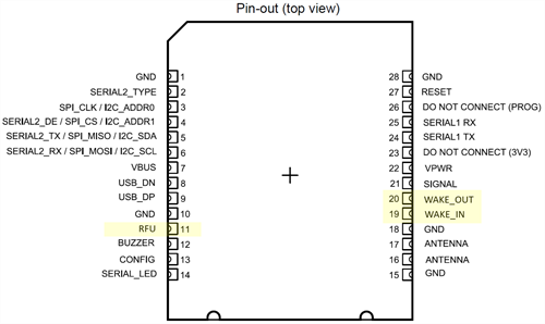 If you have already finalised your design using pin 19 as a WAKE output, this can be accommodated with a custom VTAP25 configuration option, please contact vtap-support@dotorigin.com for details.