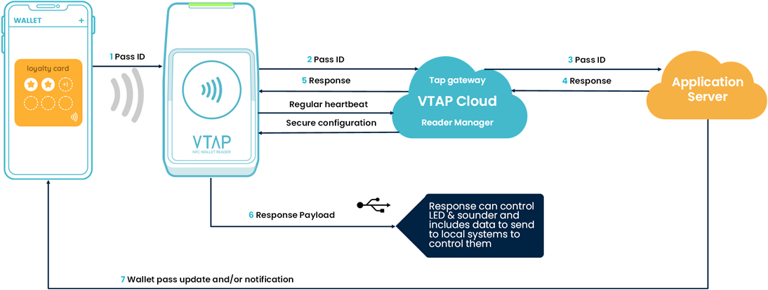 Note: The VTAP PRO readers may be pre‑configured, to suit our various customers and partners, so that demonstration units are ready to test. In some cases they are configured to work with our demonstration mobile pass platform, OriginPass, and in other cases they may be set up to use the customer's own passes and/or platform APIs.