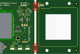 The VTAP25-DEV development board supports two ways to connect external, symmetrical, NFC antennas. This can be used to test your own antenna design before you lay out a host board for the VTAP25‑MOD reader module.